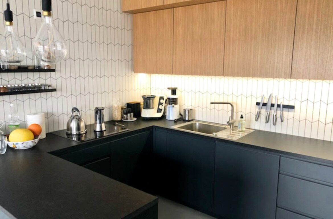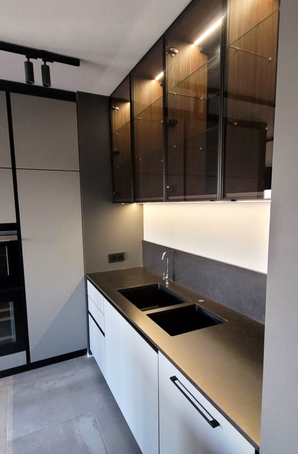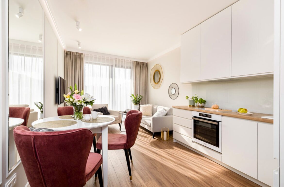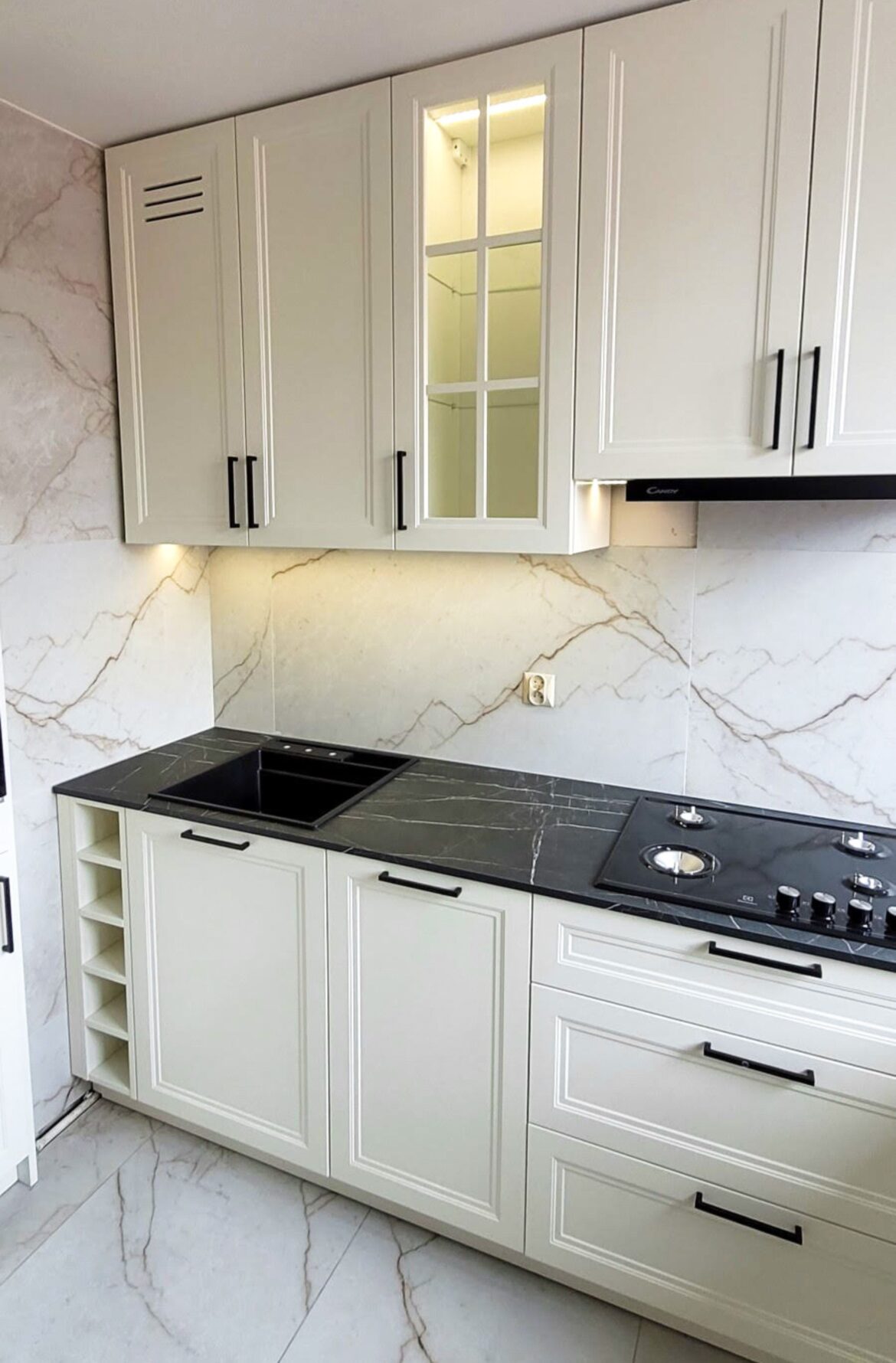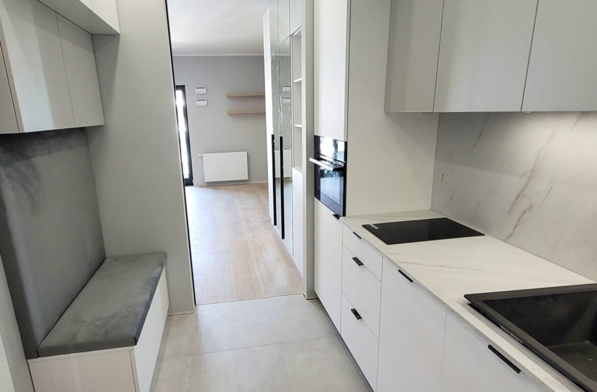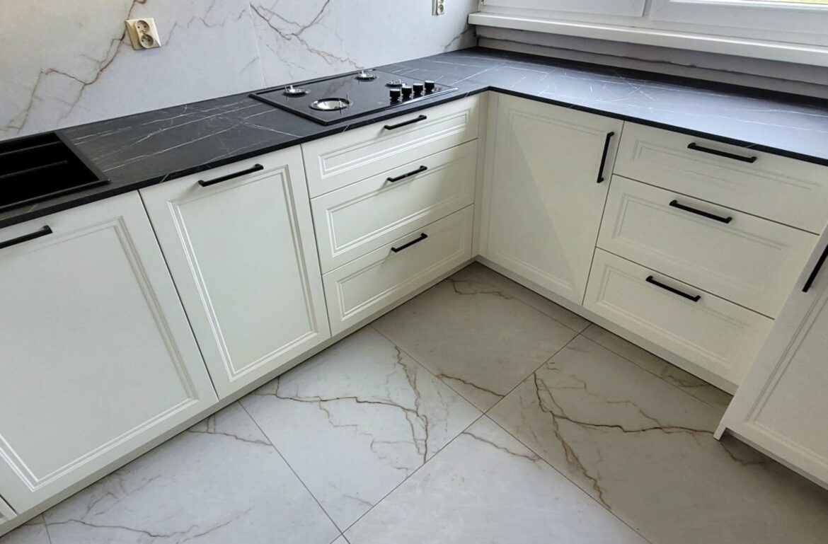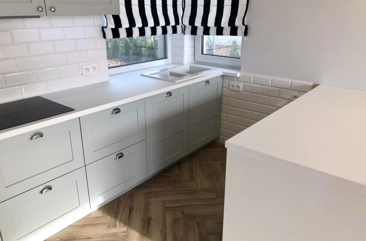 - Dobrze dopasowana zabudowa kuchenna do wymiarów pomieszczenia.