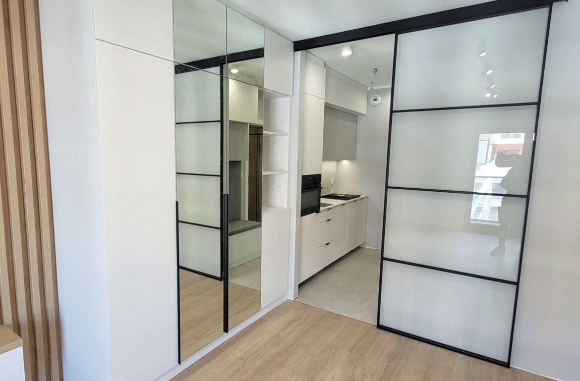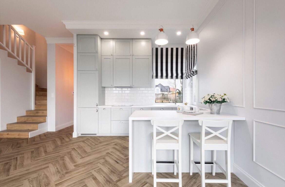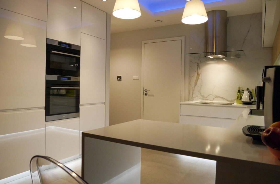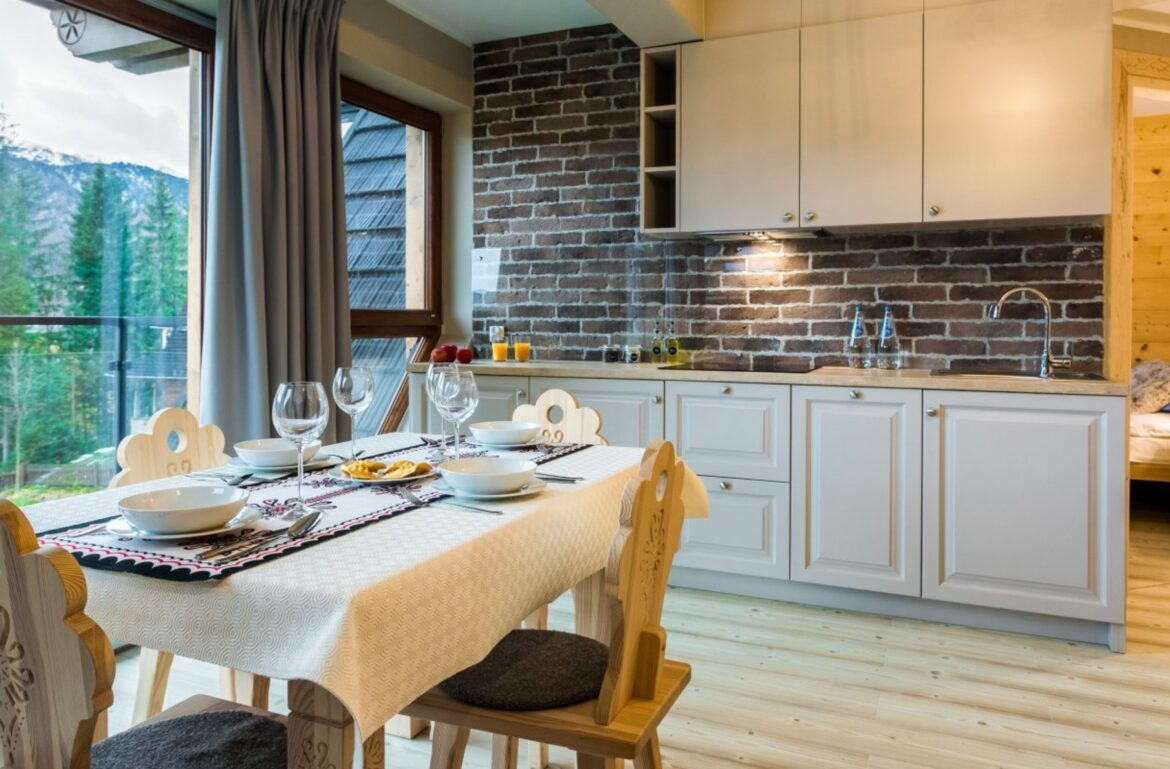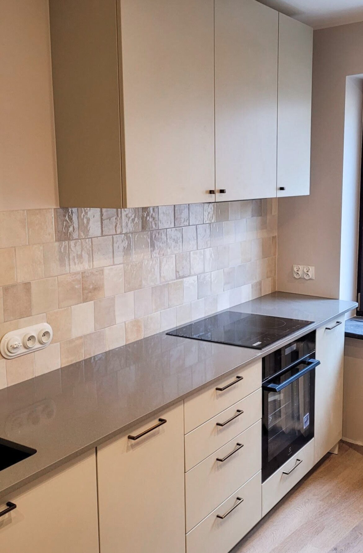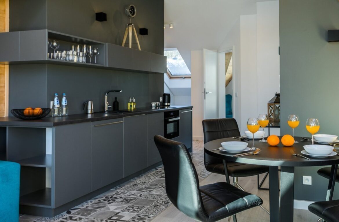 - Dobrze dopasowana zabudowa kuchenna do wymiarów pomieszczenia.