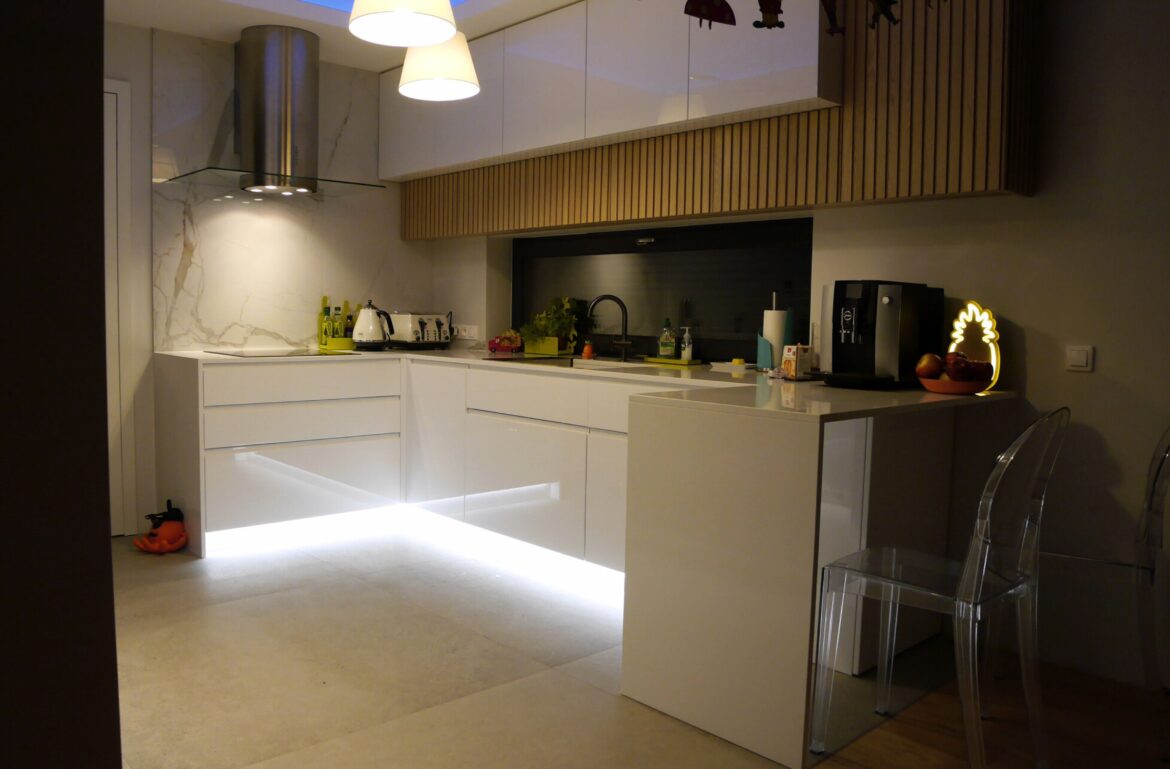 - Perfekcyjnie rozplanowana przestrzeń. Zachowanie ergonomii w kuchni, dzięki czemu sprawnie odnajdujemy się w codziennych czynnościach. Szafki kuchenne, szuflady, i akcesoria kuchenne, które porządkują i idealnie mieszczą wszystkie nasze rzeczy.