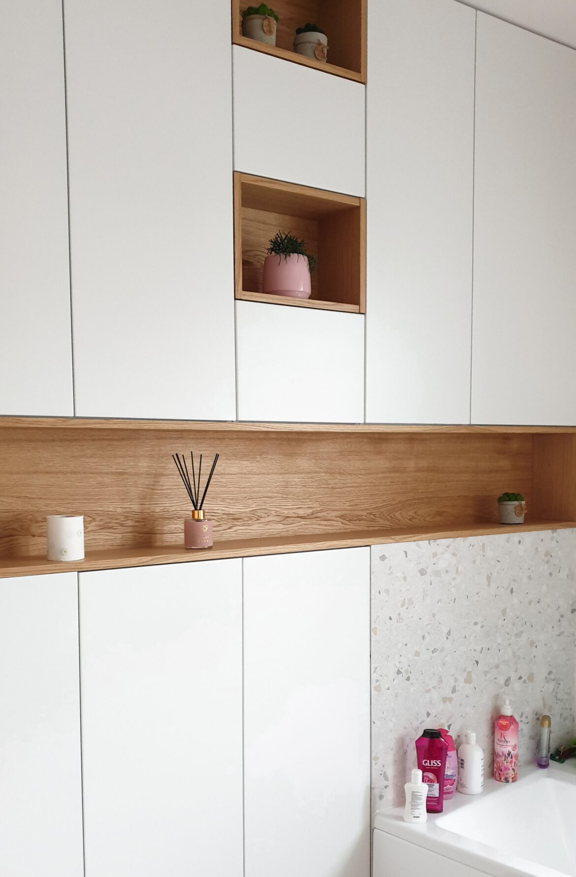 Dobrze zaprojektowana łazienka jest bardzo ważna, a idealnie dopasowane meble na wymiar są wisienką na torcie. Nieważne czy realizujemy meble do małej, czy dużej łazienki. Zawsze stawiamy na funkcjonalność, staramy się znaleźć miejsce na wszystkie niezbędne łazienkowe przedmioty, a jednocześnie zależy nam, aby wyglądały one nieskazitelnie. Mogą Państwo zamówić u nas nie tylko meble do łazienki, ale całą jej aranżacje. Przygotujemy projekt techniczny, zaproponujemy kafle, armaturę, kolory i materiały. Dobierzemy niezbędny sprzęt AGD i dokładnie rozrysujemy meble, które później wykona nasza ekipa montażowa.